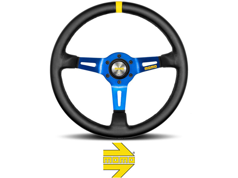 Black leather, blue spokes, NFC, 350mm